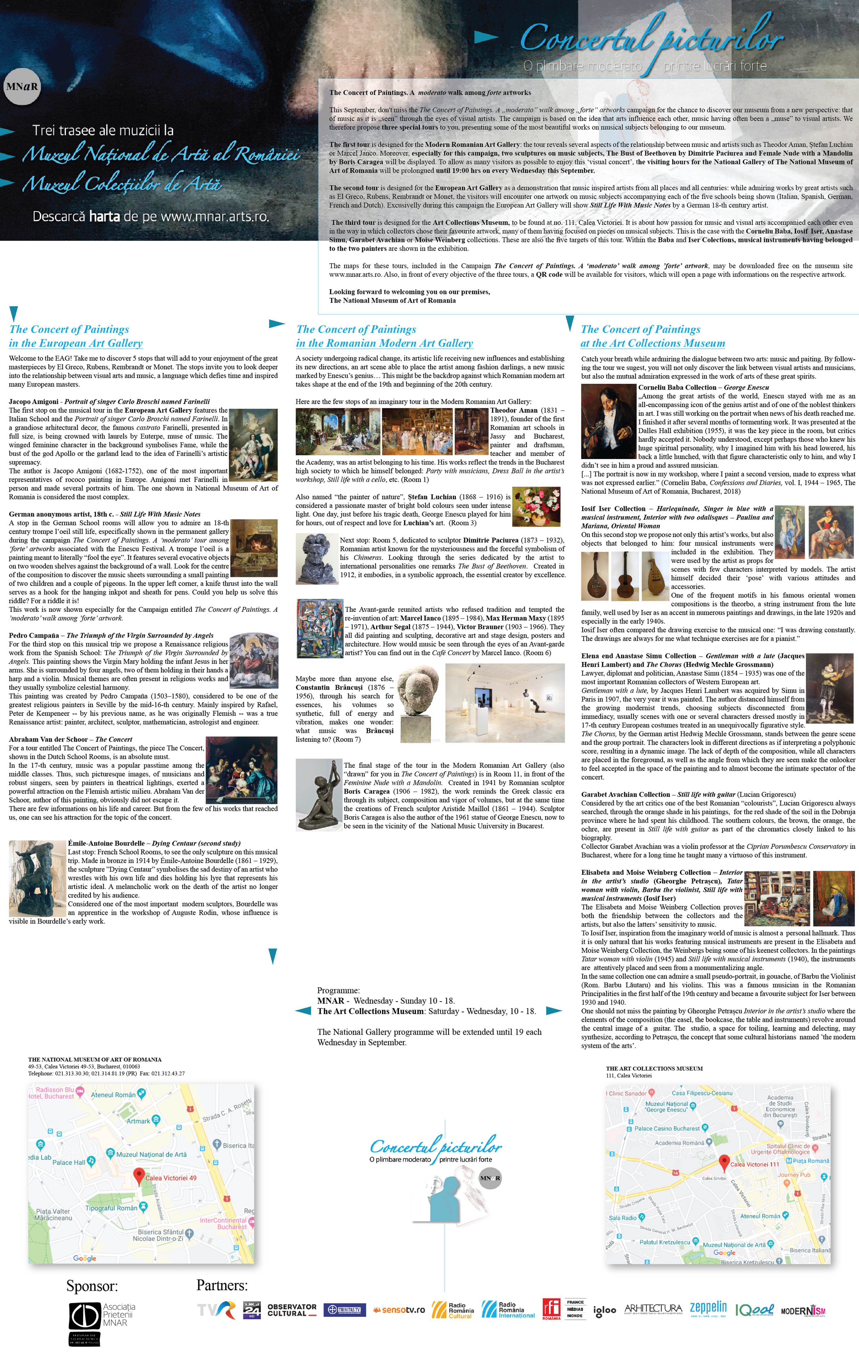 Parteneri sponsori Asociația Prietenii MNAR, Institutul francez, Domeniile Sâmburești, Aqua Carpatica, Intercontinental Athénée Palace Bucharest.