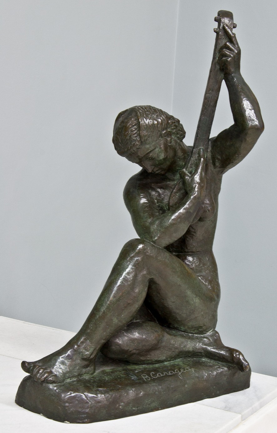 Iar finalul traseului propus în Galeria de Artă Românească Modernă și „creionat” prin Concertul picturilor este marcat de oprirea în sala 11, în fața lucrării Nud feminin cu mandolină. Realizată în 1941 de scluptorul român Boris Caragea (1906 – 1982), lucrarea ne duce cu gândul la clasicismul grecesc prin subiect, compoziție și vigoarea volumelor, amintind în același timp de propunerile plastice ale sculptorului francez Aristide Maillol (1861 – 1944). Sculptorul Boris Caragea este și autorul statuii dedicată în 1961 lui George Enescu și amplasată lângă Universitatea Națională de Muzică din București.